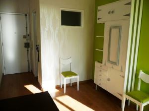 Apartment in Paço de Arcos, furnished and kitchnnette equipped, well located, 10m from the train station, first floor without elevator, bedroom with wardrobe, toilet with bathtub, some sea view, sunny, double glazing.
